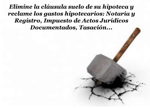 Reclamamos la cláusula suelo y los gastos de hipotecarios de notaría y gestoría, registro, actos jurídicos documentatos, gastos de tasacción. Solo cobramos si ganamos. Consulta gratuita. Llámenos!